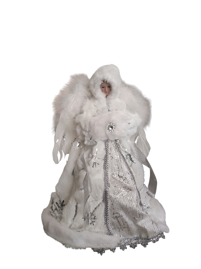 ΑΓΓΕΛΟΣ ΚΟΡΥΦΗ ΧΡΙΣΤΟΥΓΕΝΝΙΑΤΙΚΟΥ ΔΕΝΤΡΟΥ ΛΕΥΚΟ-ΑΣΗΜΙ ΜΕ ΓΟΥΝΑ INART