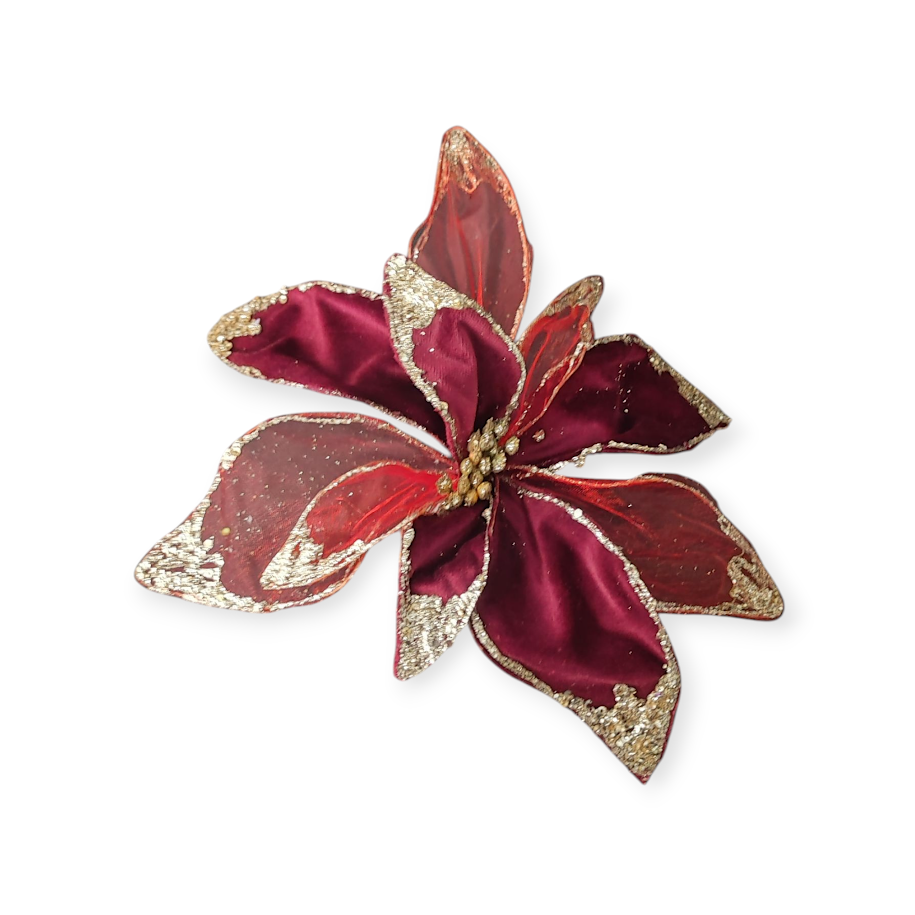 Χριστουγεννιάτικο λουλούδι της εταιρείας Inart. Ιδανική επιλογή για να στολίσετε το χριστουγεννιάτικο δέντρο σας ή για διάφορες κατασκευές. Είναι κατασκευασμένο από ύφασμα ένα υλικό που δίνει στη διακόσμησή σας ένα χειροποίητο αποτέλεσμα και μια αίσθηση πολυτέλειας.